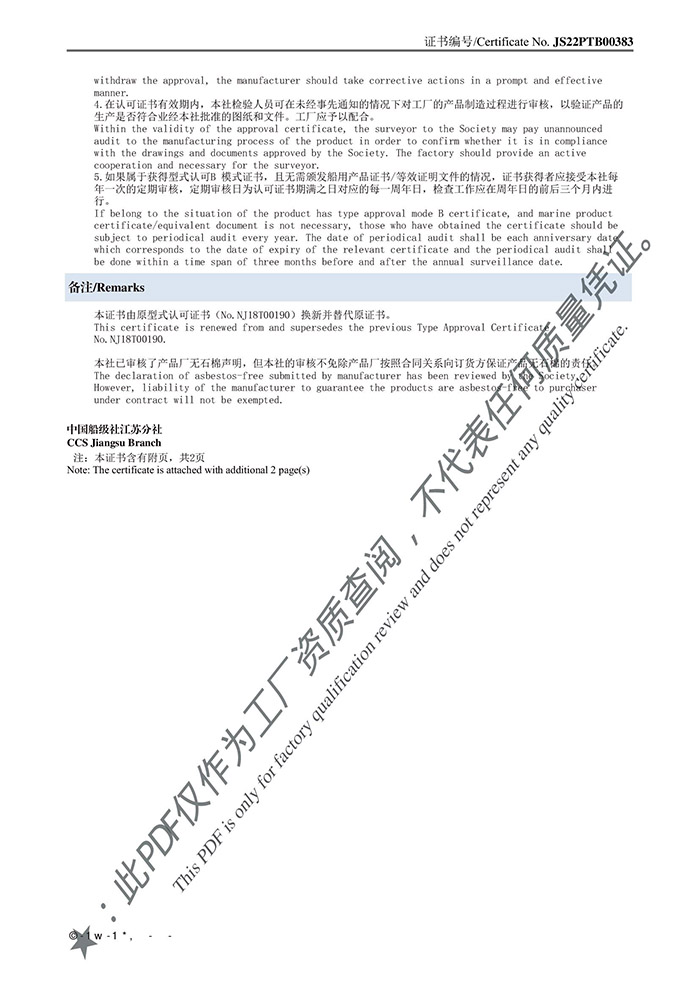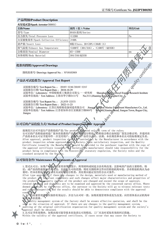 CCS火星熄滅消音器認可證書